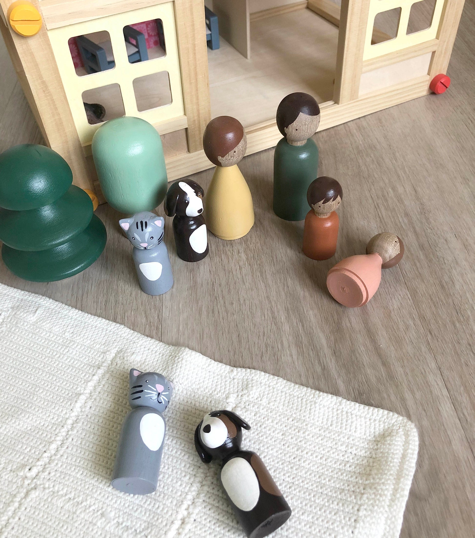 Dollhouse Family Set, nursery decor, natural kids toy, Peg doll family set, wooden pets for dollhouse, Dollhouse Christmas Set