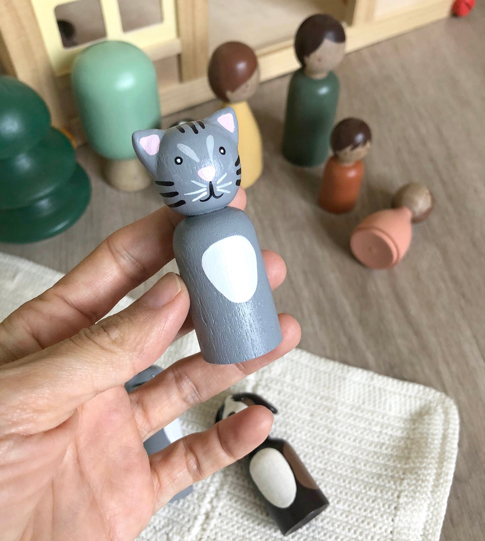 I use very durable non-toxic paint and sealant so the peg dolls are ready for regular play.
