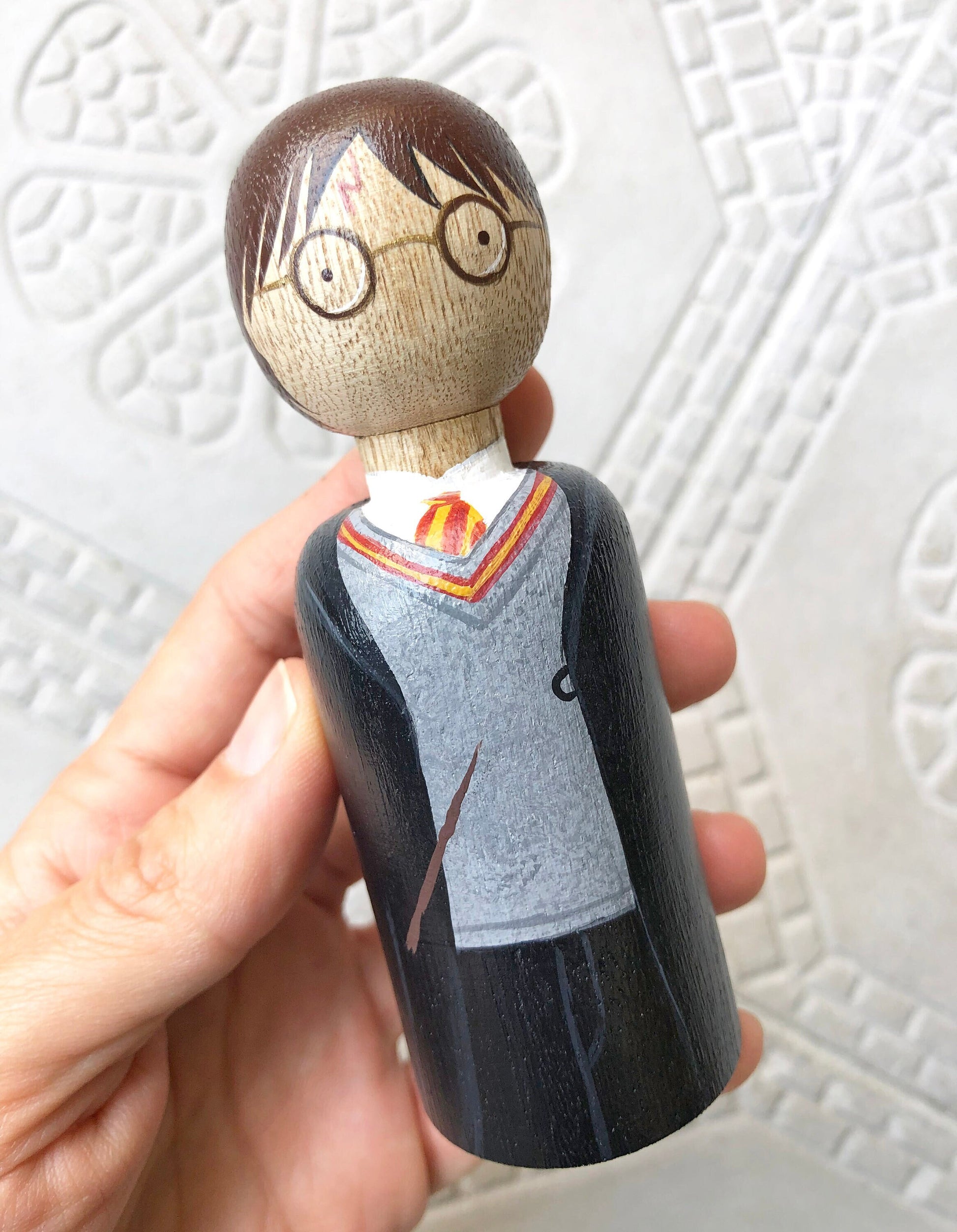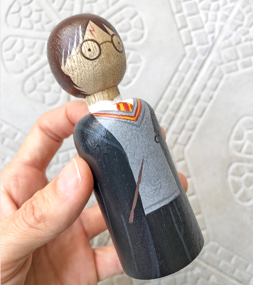 Hand Painted Wooden Harry Potter Doll, Custom Wizard peg dolls, gift for harry potter collectors, gift for teenagers, Wizard Cake topper