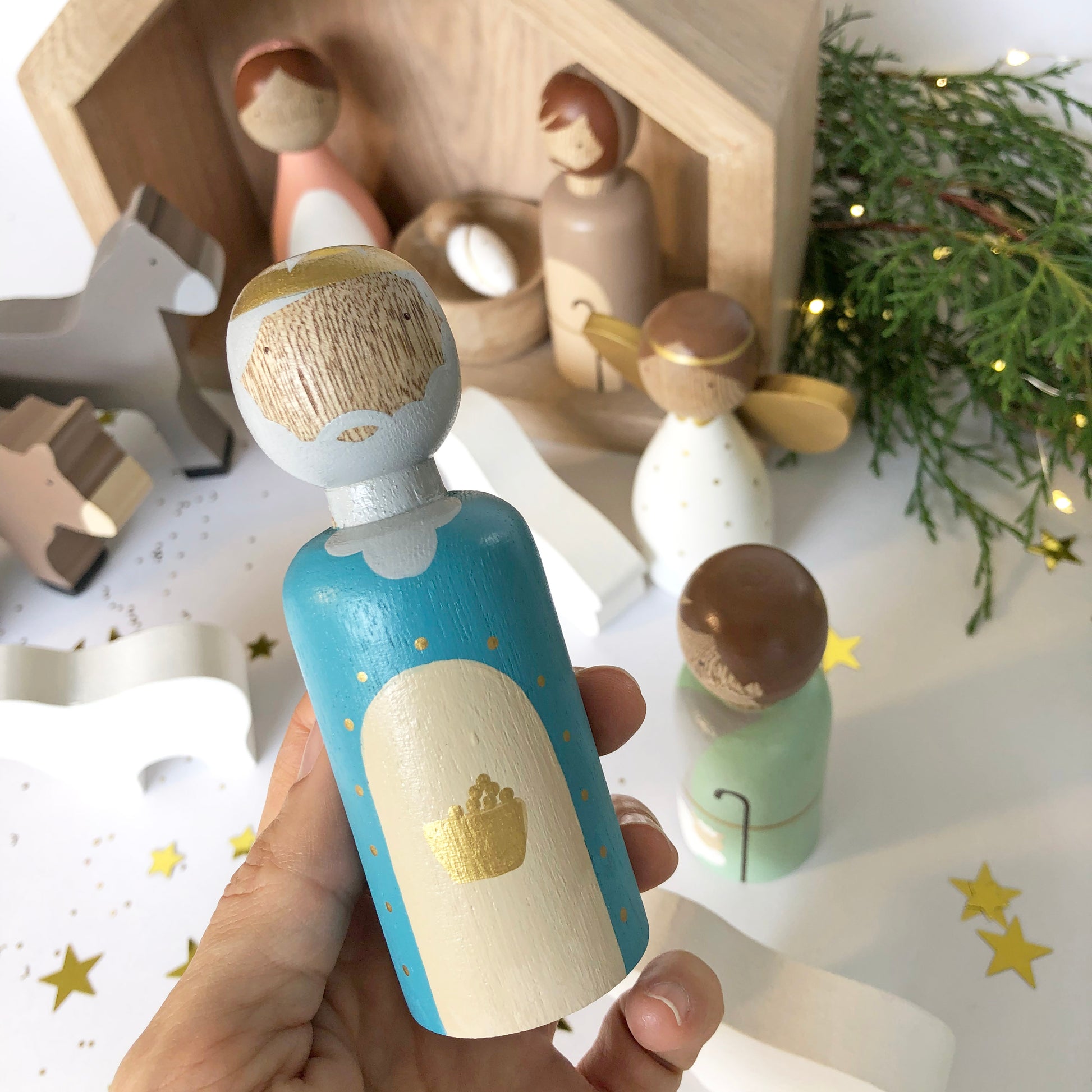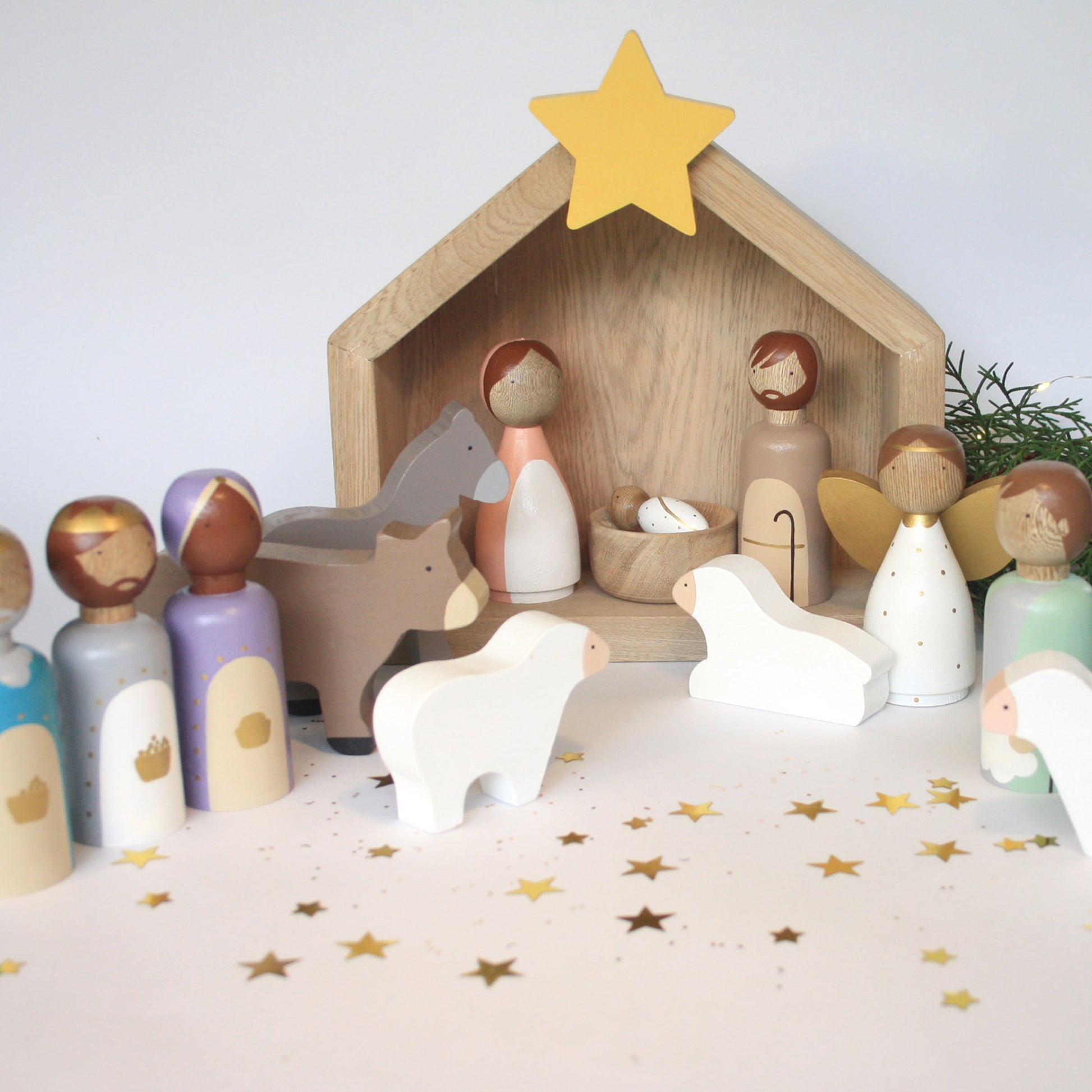 Kids wooden nativity set, Christmas decorations, wooden manger, Peg Doll Nativity Set, Christmas Story, Birth of Jesus, nativity scene