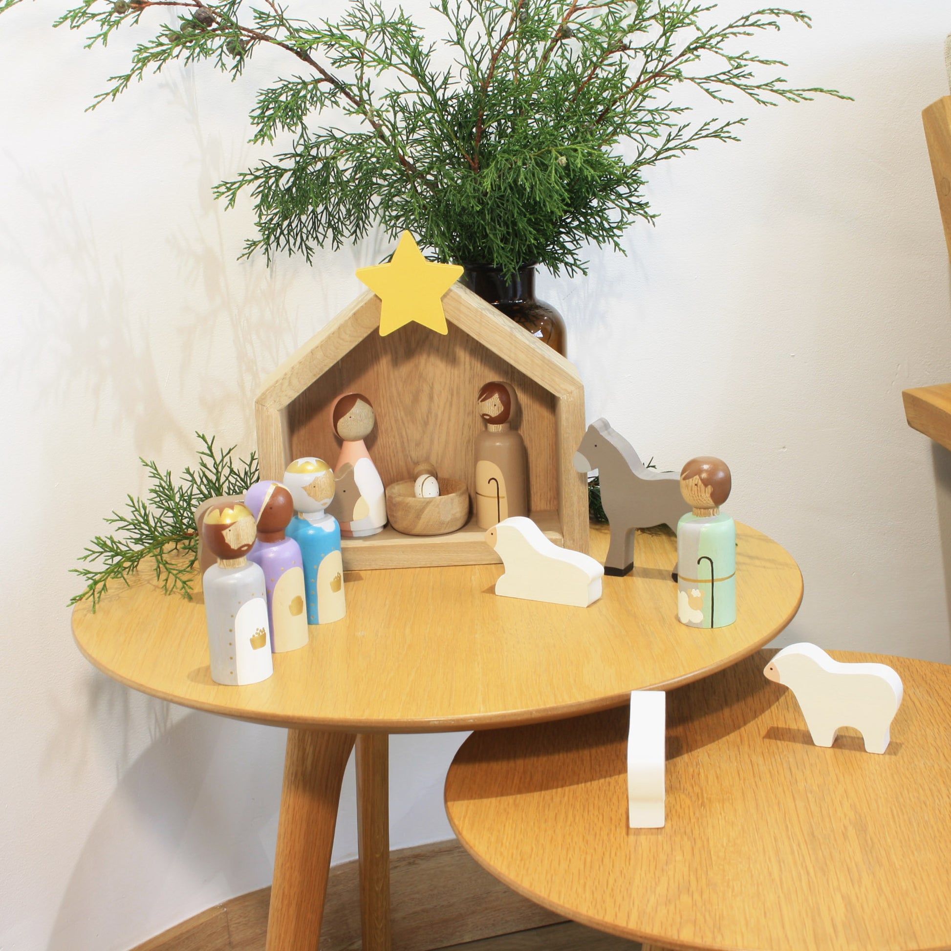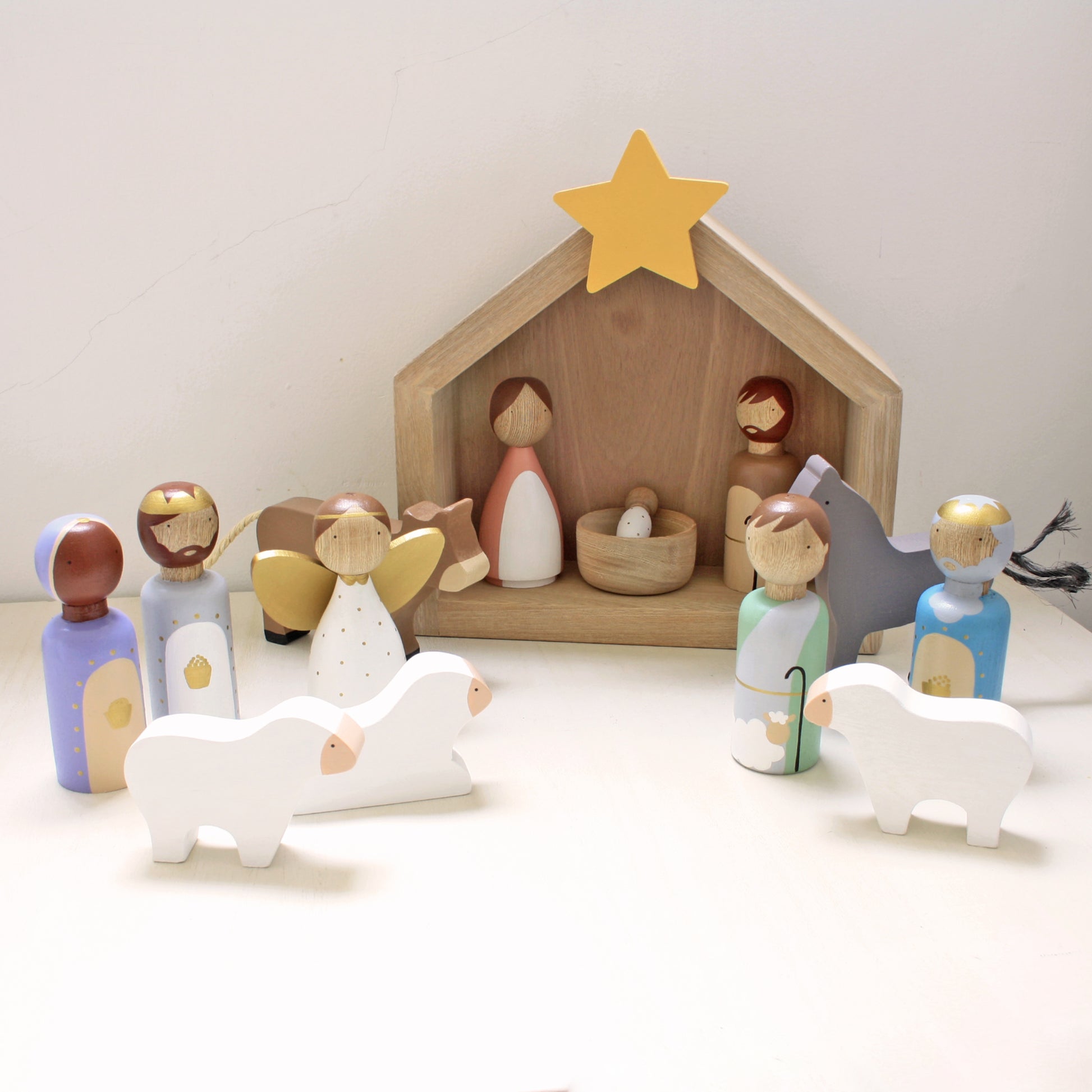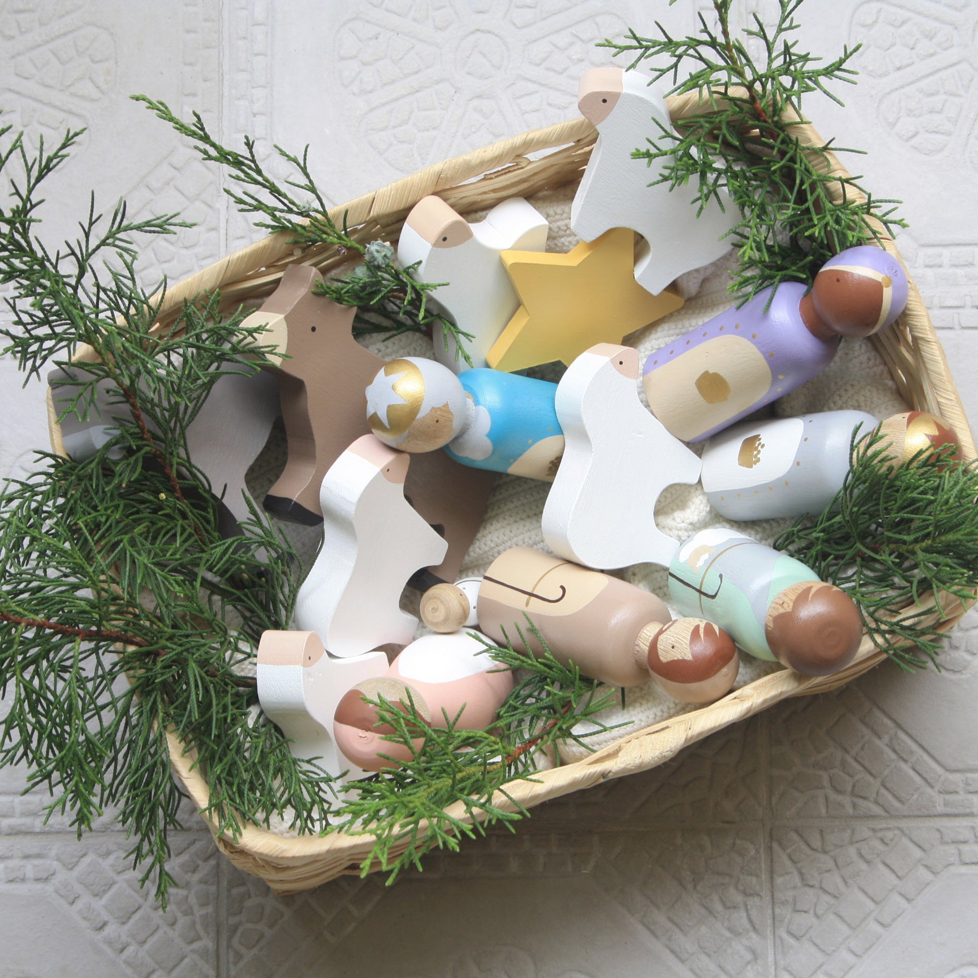 16 Figures - Kids wooden nativity set, Christmas decorations