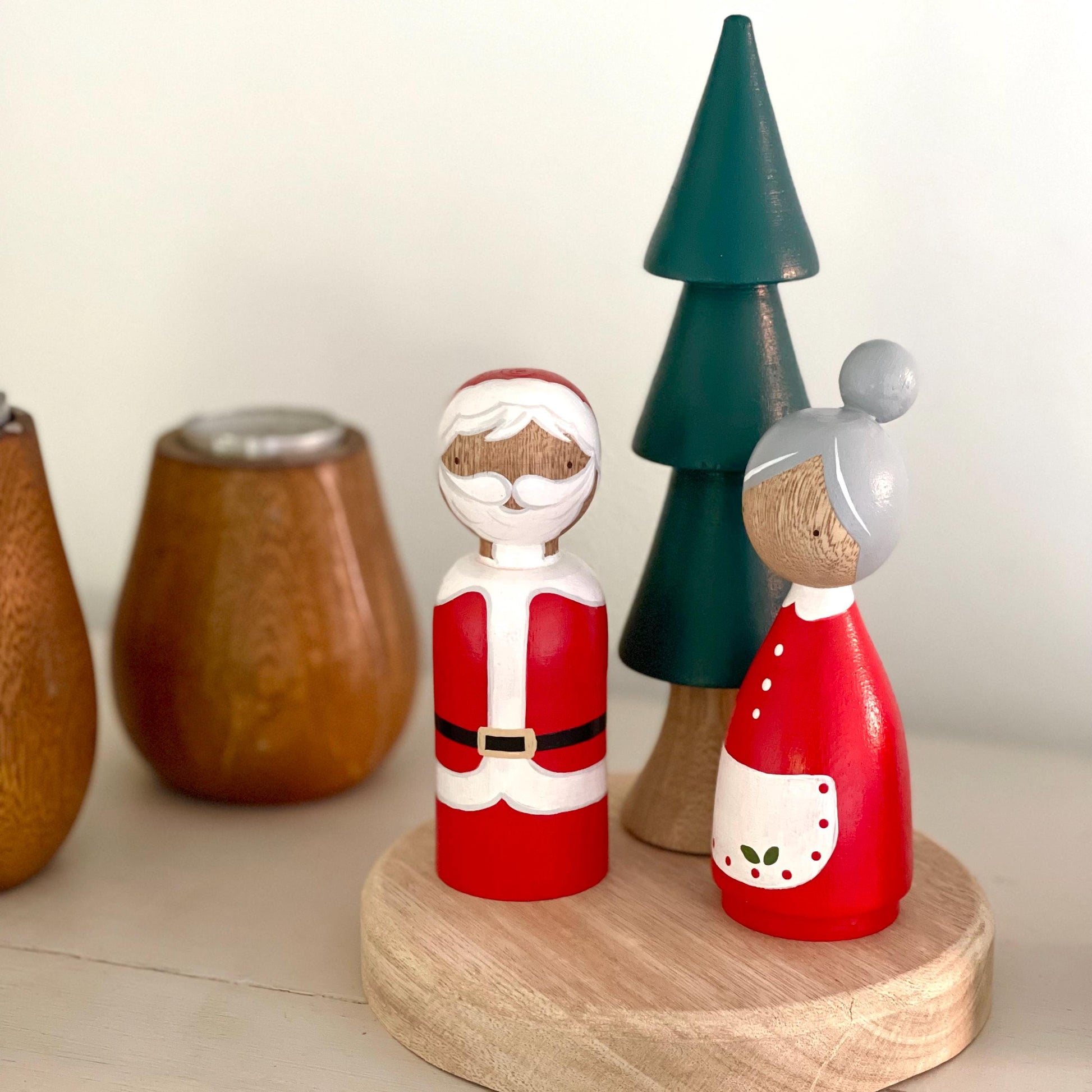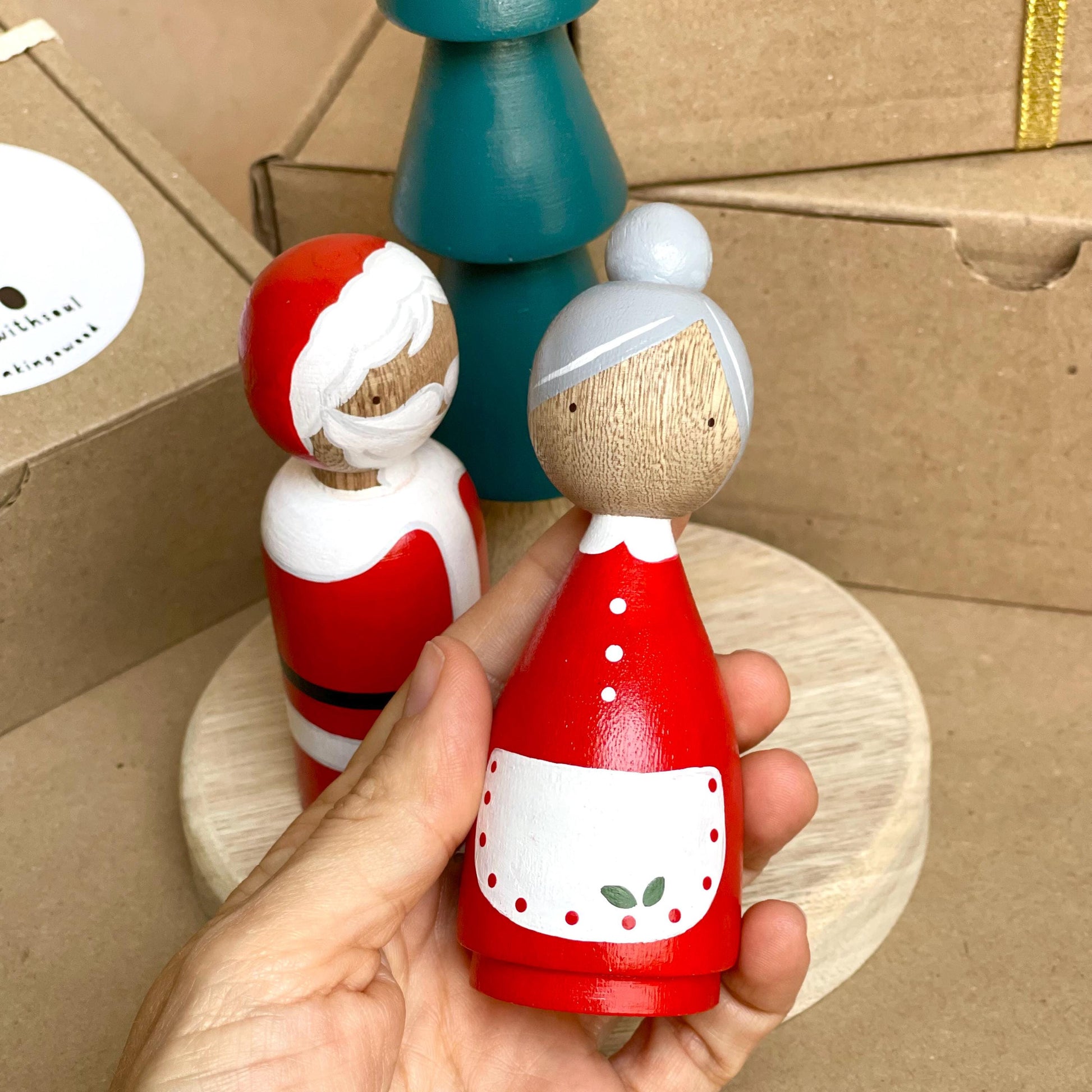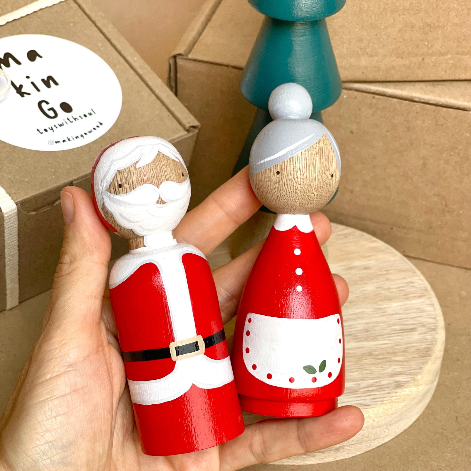 Santa & Mrs. Claus Peg People, Christmas Decorations, Wooden Santa Toy, Nativity Figures, Holiday Pretend Play Gift for Kids, advent figures