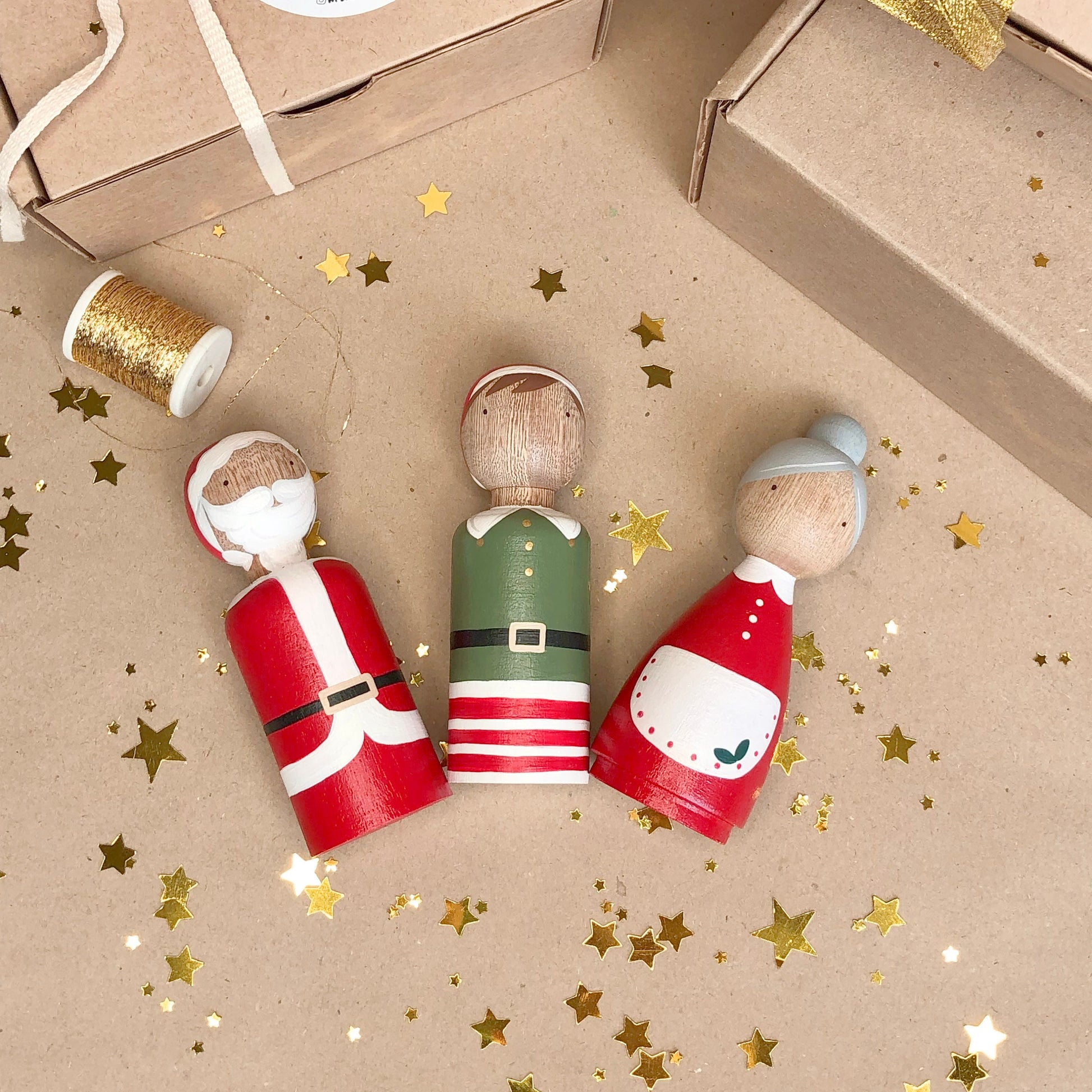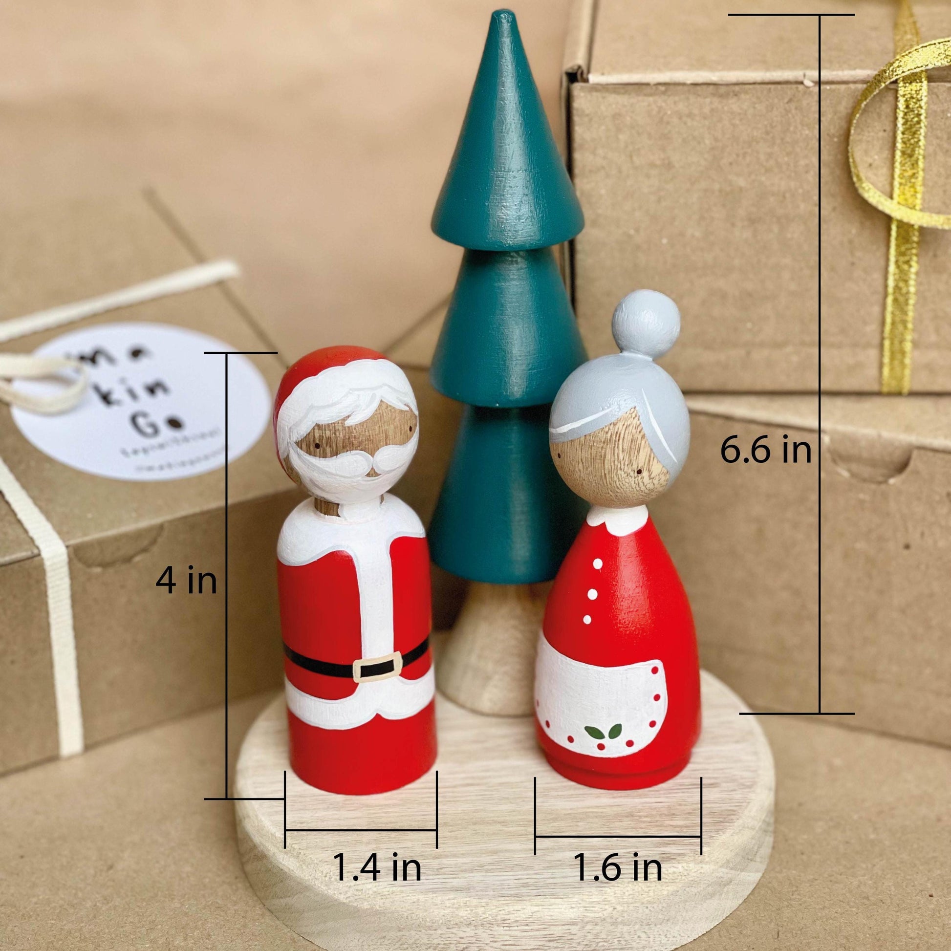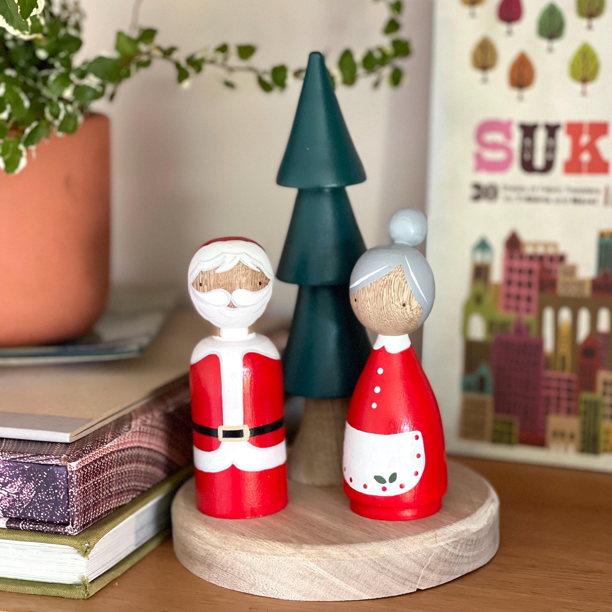 Santa & Mrs. Claus Peg People, Christmas Decorations, Wooden Santa Toy, Nativity Figures, Holiday Pretend Play Gift for Kids, advent figures