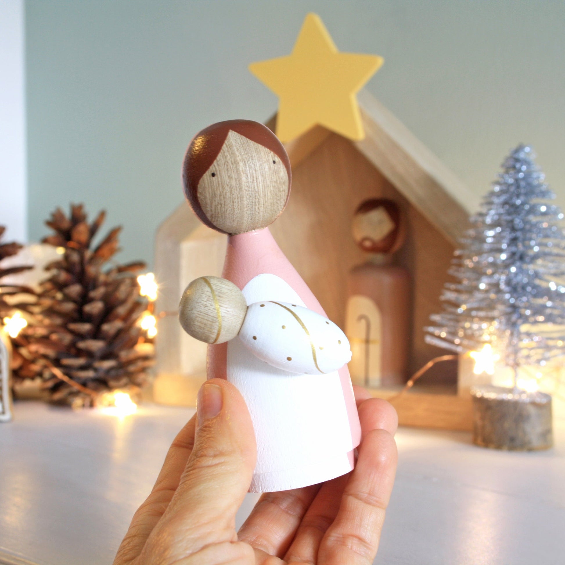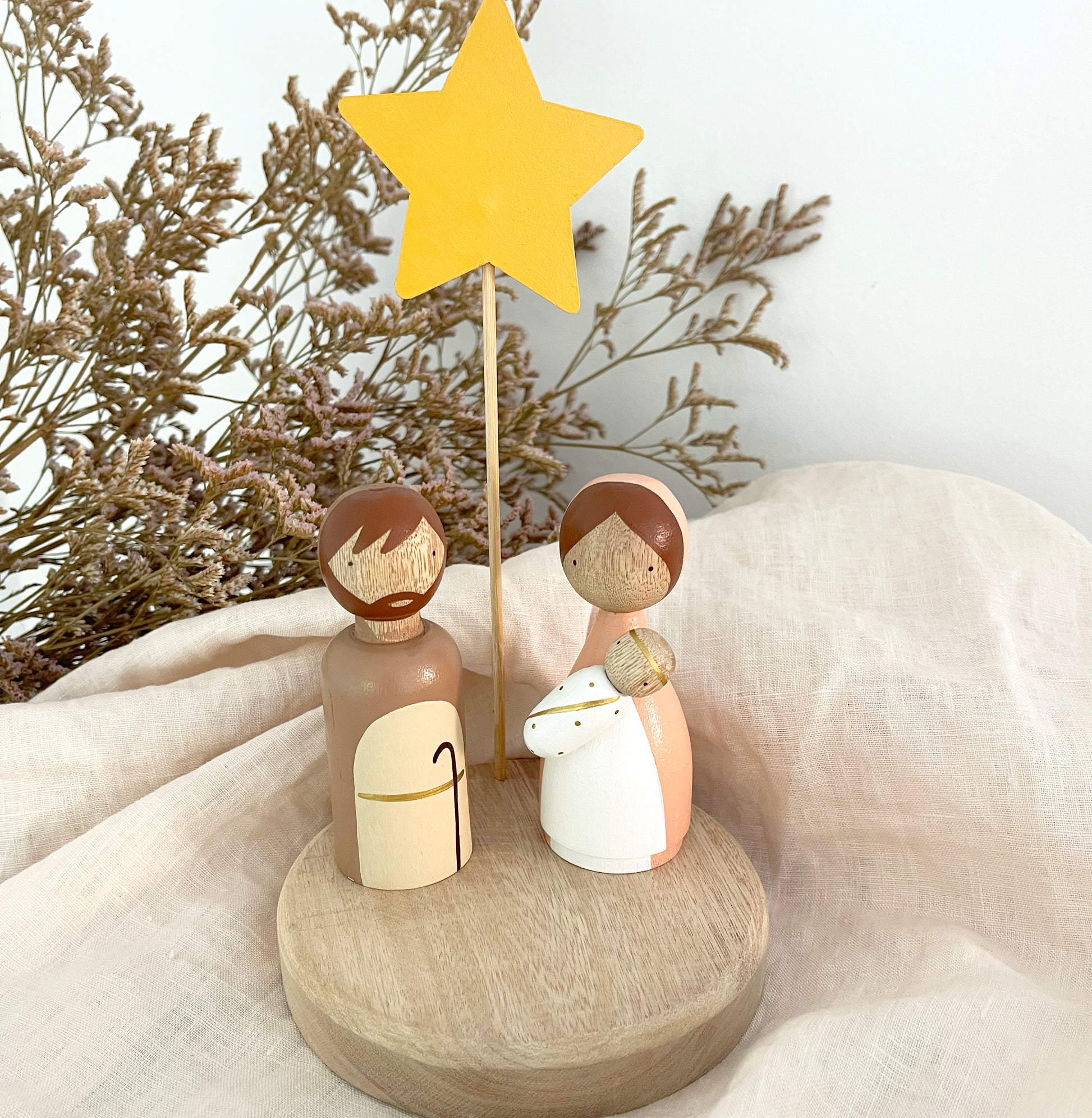 5 Figures - Wooden Kids Nativity Set - Peg Doll Christmas Story