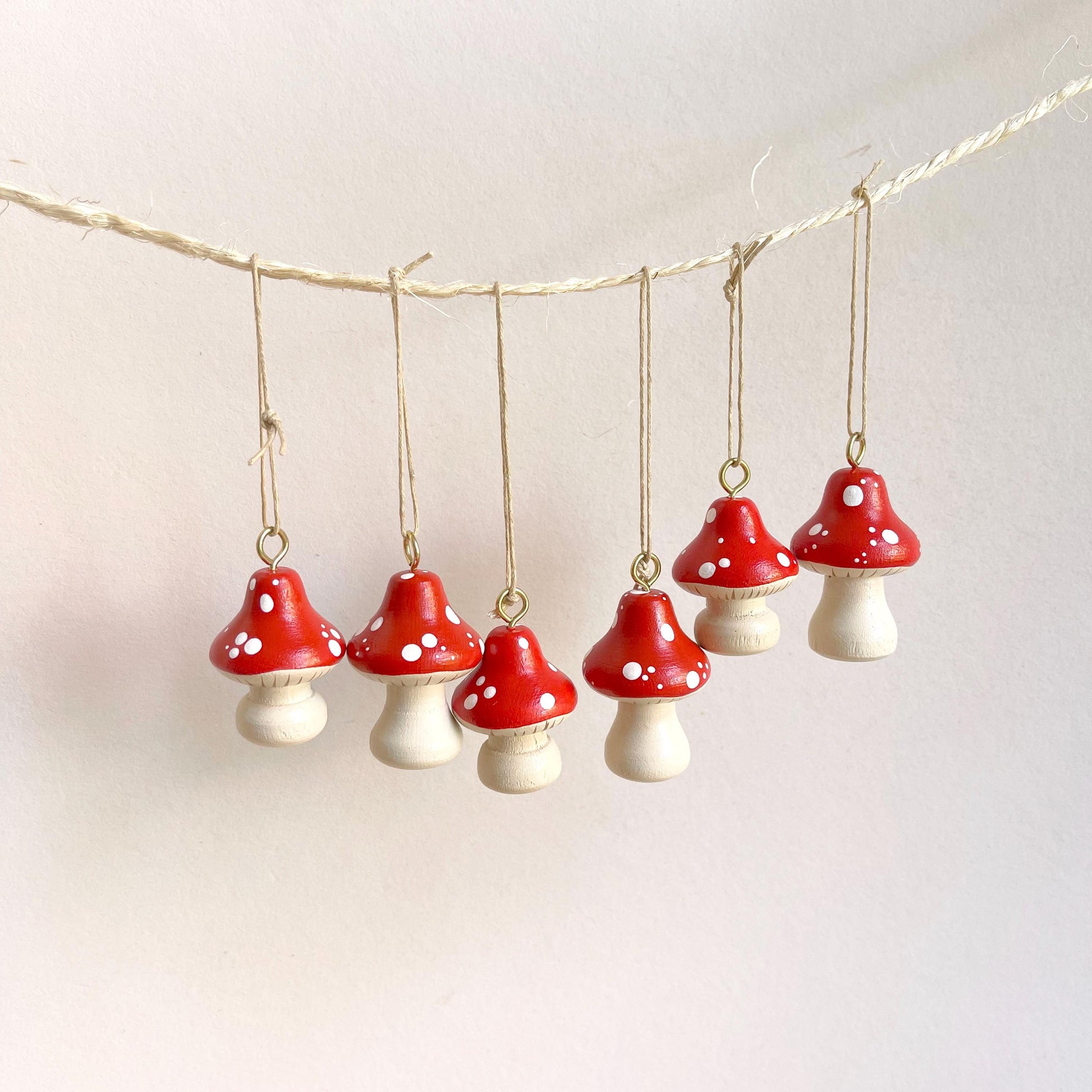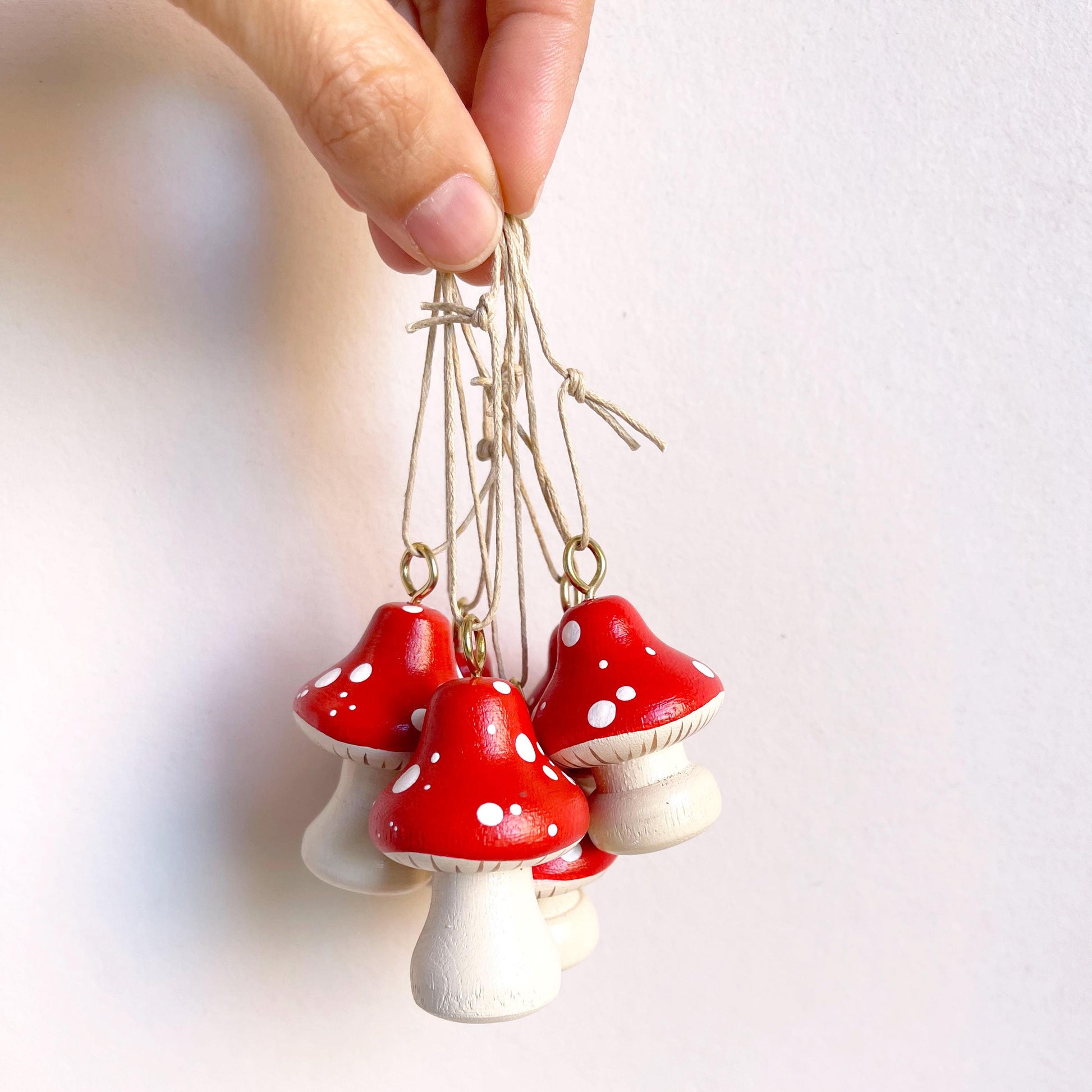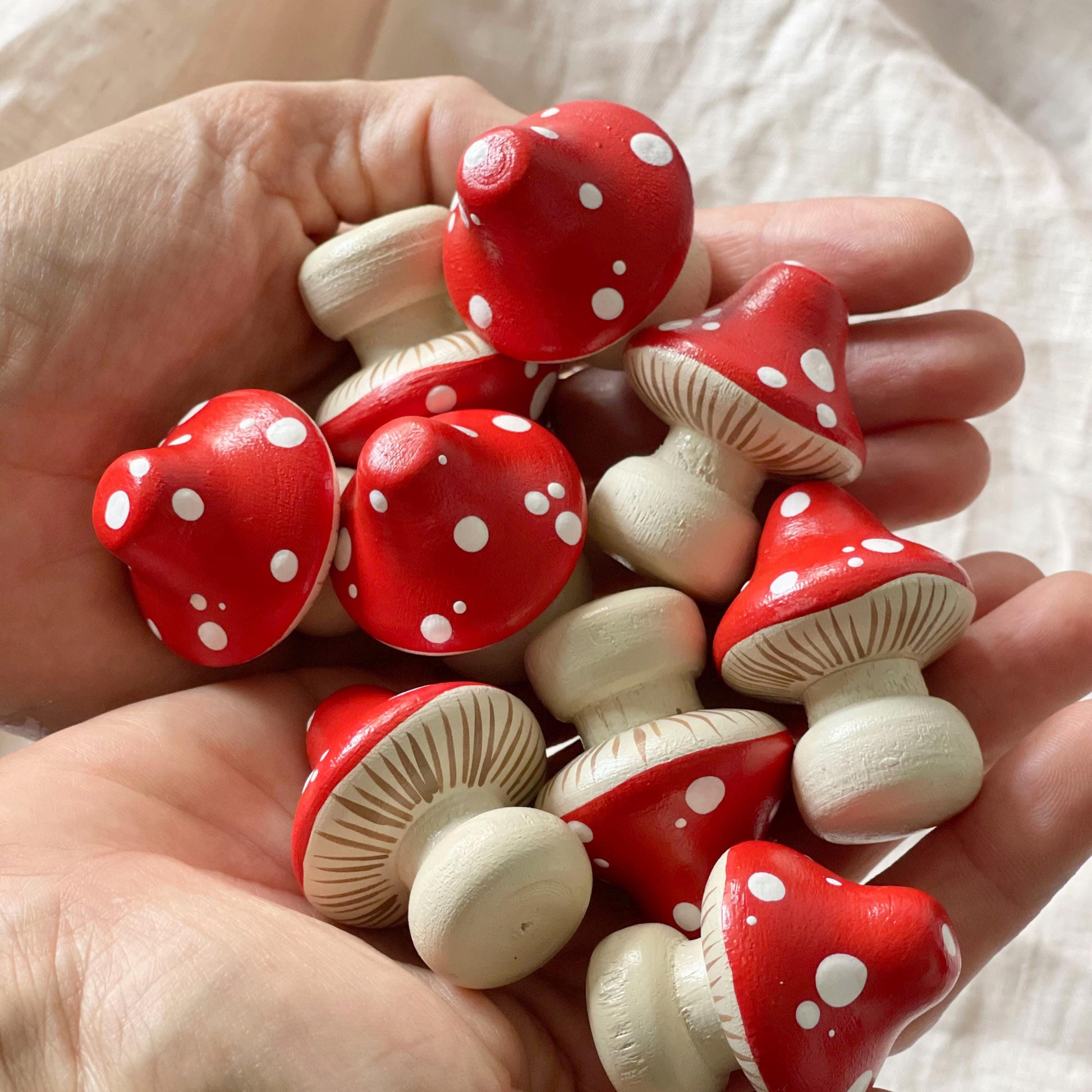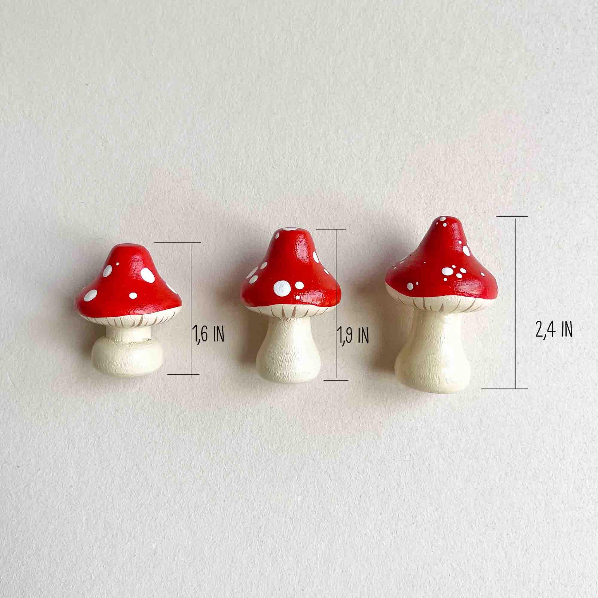 Mushrooms are approximately 1.6 to 2.4 inches tall. Each piece may slightly vary due to being handmade and hand-painted.