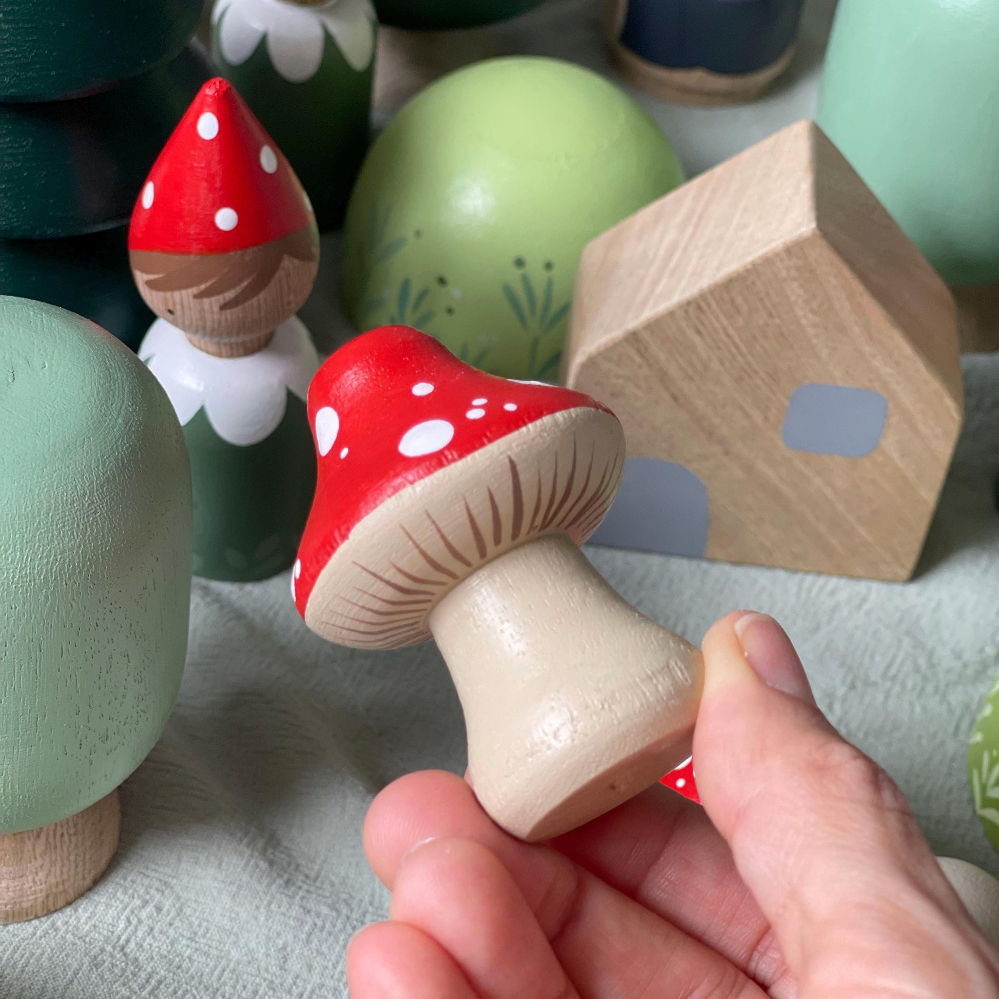 Hand-Turned and Hand-Painted Wooden Mushrooms