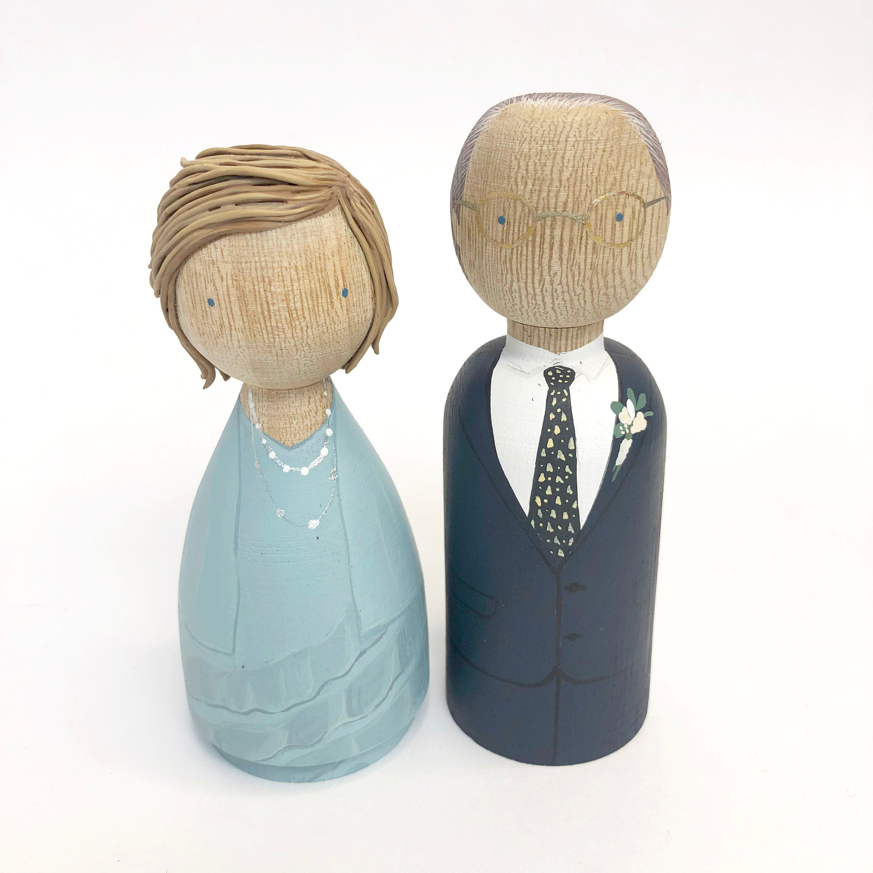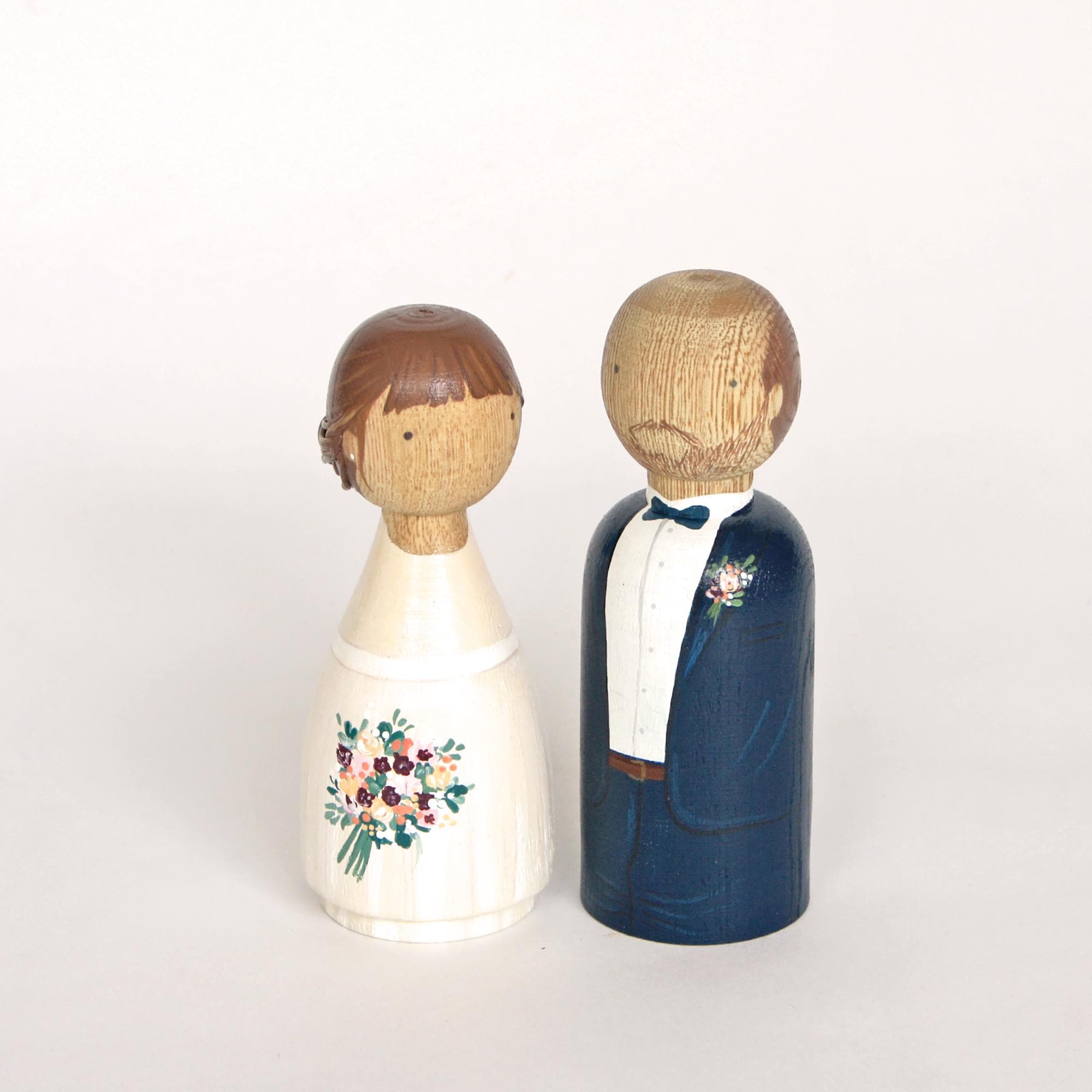 Personalized Wedding Peg Dolls - Bride & Groom Cake Topper