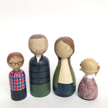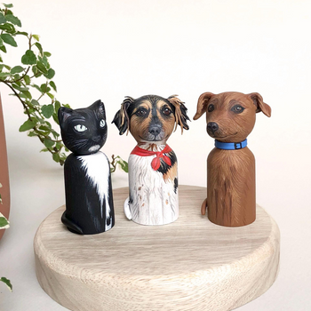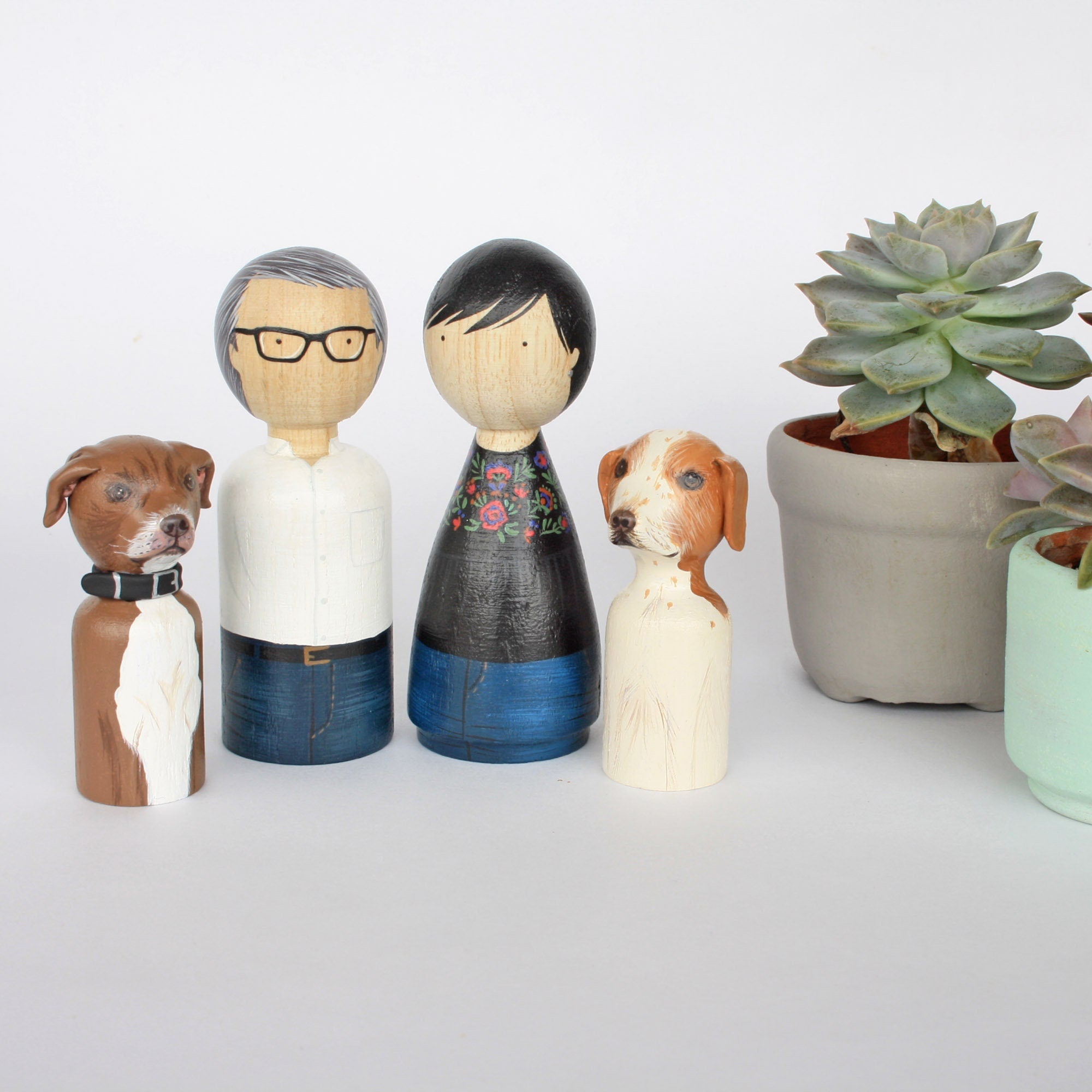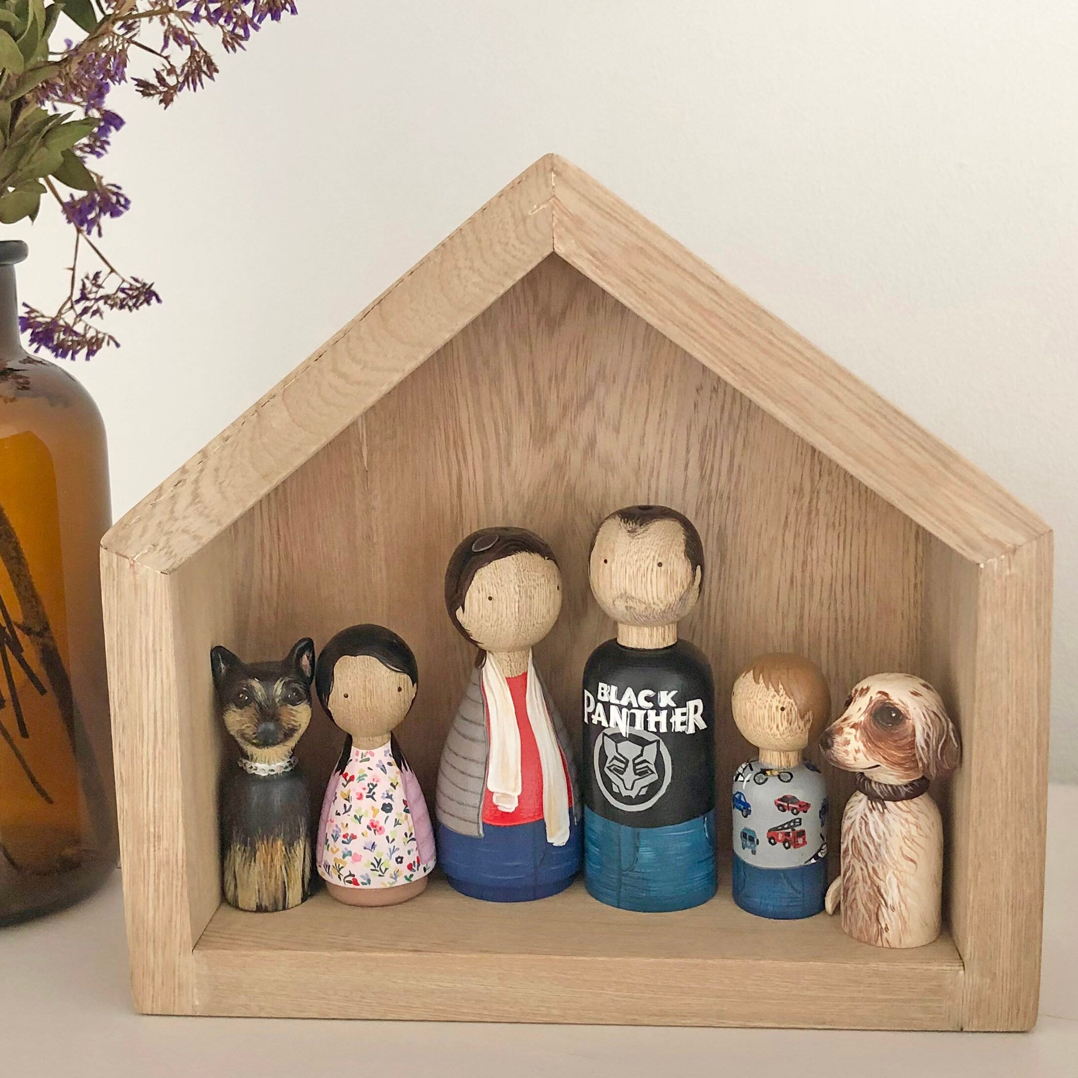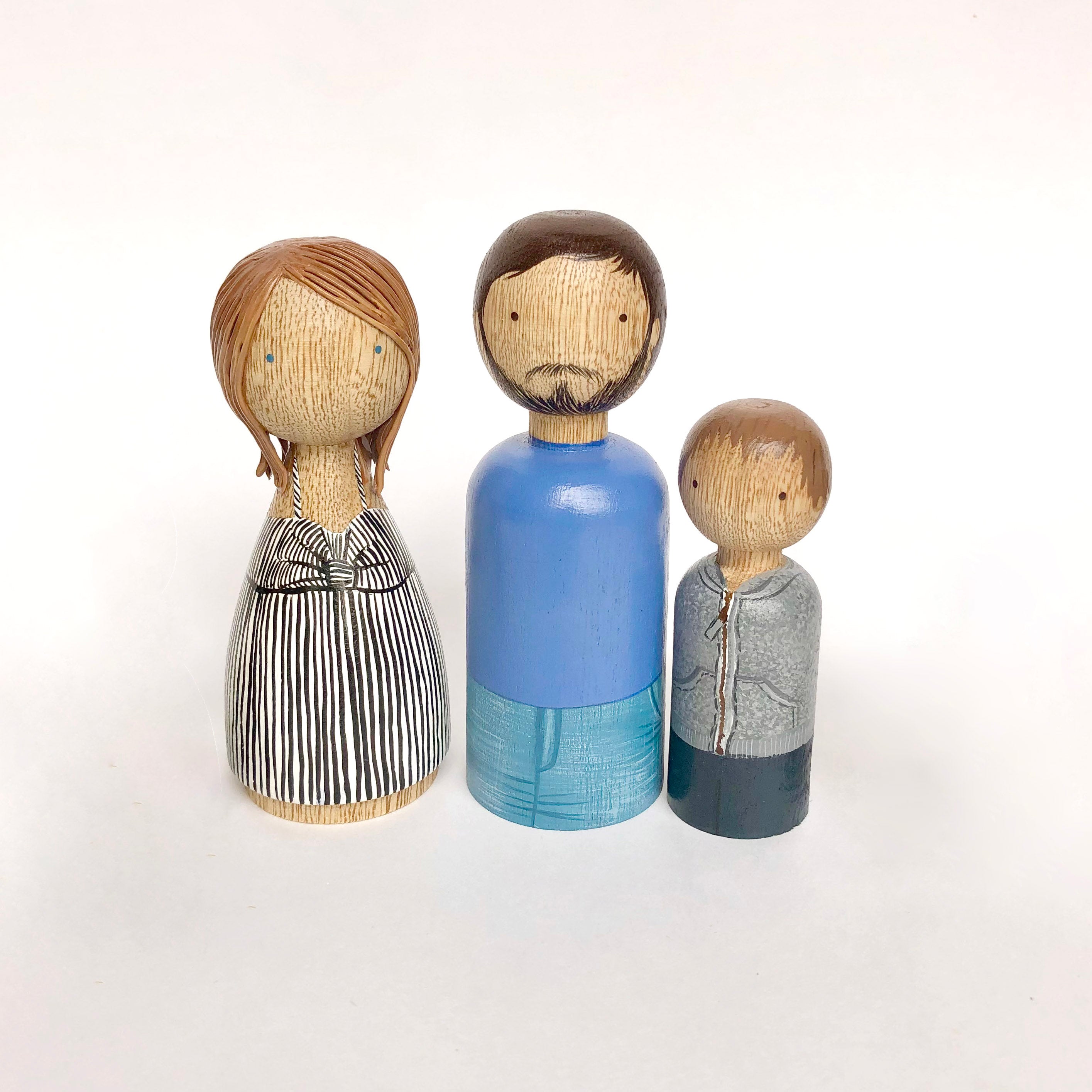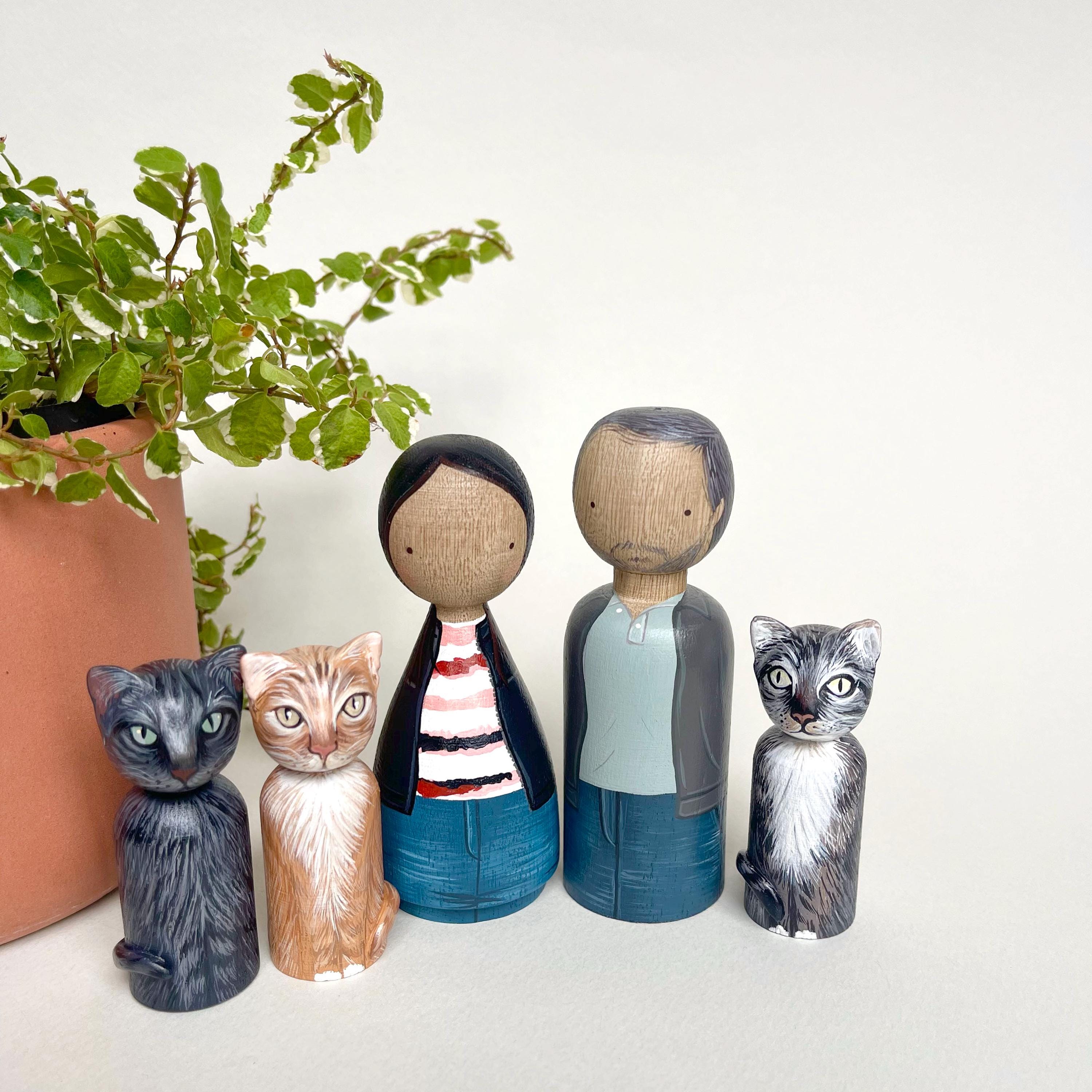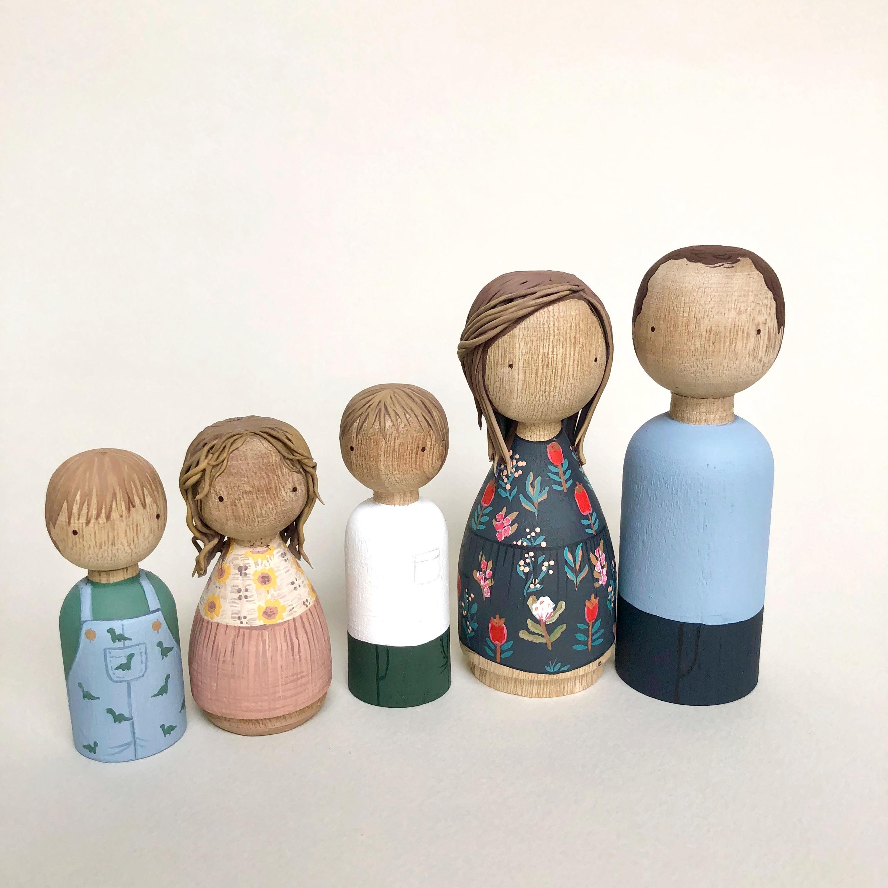 Turn your family into handmade wooden dolls with custom features and optional 3D details.